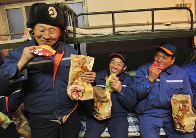 1月15日是北京進(jìn)入三九的第七天。早上6點(diǎn),室外依然是零下十幾度的低溫,往常這個(gè)時(shí)候,正是環(huán)衛(wèi)工人們開始一天忙碌的時(shí)刻。今天,東直門街道環(huán)衛(wèi)點(diǎn)顯得格外熱鬧,在這里,環(huán)衛(wèi)工人們吃上了他們開工前一份熱騰騰的早餐。 記者在現(xiàn)場(chǎng)看到,在不到20平米的宿舍內(nèi),環(huán)衛(wèi)工人洗漱完畢,正整理工具準(zhǔn)備奔向各自的管片兒。正在這時(shí),肯德基餐廳的員工們冒著嚴(yán)寒給他們送來了冒著熱氣的早點(diǎn):一份燒餅、一份雞蛋灌餅和一碗粥。同時(shí)送到大家手上的,還有一個(gè)特殊的卷軸,“環(huán)衛(wèi)工人你最棒”幾個(gè)大字下面滿滿印著幾百個(gè)紅色大拇指手印,這正是在肯德基餐廳里收集到的來自北京市民的祝福,道出了全體北京市民的心聲。 新年伊始,一場(chǎng)60年不遇的大雪襲來,京城呈現(xiàn)銀裝素裹美麗妝容的同時(shí),大雪也為北京居民的出行添了一把不小的“堵”,為了讓大家安全、準(zhǔn)時(shí)地上班上學(xué),環(huán)衛(wèi)工人展開了一場(chǎng)持續(xù)數(shù)十小時(shí)的大奮戰(zhàn)。環(huán)衛(wèi)工人王長(zhǎng)榮就是在惡劣天氣下持續(xù)奮戰(zhàn)倒在工作崗位上的,他的事跡牽動(dòng)了無數(shù)市民的心,也讓環(huán)衛(wèi)工人這個(gè)名字再次成為社會(huì)的焦點(diǎn)。 北京肯德基在第一時(shí)間利用餐廳資源向北京市民展開“環(huán)保工人你最棒”的愛心手印征集,與此同時(shí),積極與街道辦事處、環(huán)衛(wèi)部門舉得聯(lián)系,希望為環(huán)衛(wèi)工人送上自己的一份愛心。 一位在餐廳按下手印的北京市民特意通過餐廳向傳達(dá)他對(duì)環(huán)衛(wèi)工人的謝意,并賦詩一首: