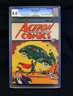 美國(guó)漫畫(huà)收藏家們今年以來(lái)頻頻出手,繼2月份兩次刷新單本漫畫(huà)拍賣(mài)紀(jì)錄后,3月29日,一本保存極為完好的超人漫畫(huà)首發(fā)刊拍出150萬(wàn)美元高價(jià)。 這本1938年版《動(dòng)作漫畫(huà)》第一期29日在拍賣(mài)網(wǎng)站www.comicconnect.com上以150萬(wàn)美元成交。拍賣(mài)網(wǎng)站所有者斯蒂芬·菲什勒說(shuō),這本漫畫(huà)在網(wǎng)站上發(fā)布數(shù)分鐘后,即被名為“鐵桿漫畫(huà)粉絲”的買(mǎi)家以150萬(wàn)美元拍下。 這本首發(fā)刊標(biāo)志著身穿藍(lán)色緊身衣、披紅色斗篷、胸前印有S標(biāo)記的超人形象首次面世。同一版本的超人漫畫(huà)曾在2月份拍出100萬(wàn)美元高價(jià)。幾天后,標(biāo)志著蝙蝠俠誕生的1939年第27期《偵探漫畫(huà)》拍得107.55萬(wàn)美元。 業(yè)內(nèi)人士估計(jì),目前該版本超人漫畫(huà)僅存約100本,但保存情況良好的為數(shù)不多。此次拍出的這本漫畫(huà)保存得相當(dāng)好,比2月份拍出百萬(wàn)美元的同版本評(píng)級(jí)還要高。 據(jù)拍賣(mài)網(wǎng)站介紹,它此前被夾在一本舊電影雜志內(nèi),半個(gè)世紀(jì)后才在匹茲堡的一場(chǎng)舊貨拍賣(mài)中被人們發(fā)現(xiàn)。 這本漫畫(huà)當(dāng)年發(fā)行時(shí)售價(jià)僅為10美分。
