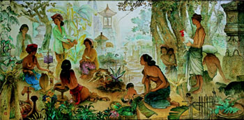 以2530萬港元拍出的李曼峰油畫代表作《峇里民采》。新華社發(fā) |
