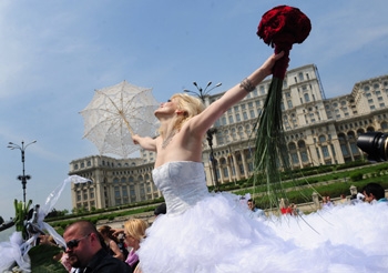 “旅行先鋒”明尼蘇達店負責人馬西婭·格蘭特說:“如今的新人喜歡追求新形式的婚禮。他們不想婚禮成為壓力,希望舉辦一個更值得紀念、簡潔的婚禮! 對于一些新人來說,舉行海上婚禮無疑是一個浪漫之選。 “挪威人航海旅游公司”發(fā)言人考特尼·雷希特說,公司每年舉辦超過400場婚禮。公司提供婚禮一條龍服務(wù)。新人可以選擇甲板或者岸上婚禮,婚禮地點可以選在美國、加拿大、墨西哥、歐洲、加勒比海地區(qū)或百慕大的港口。 除了儀式,現(xiàn)在的新人對婚期也有更多要求。格蘭特說:“眼下最熱門的日期是2010年10月10日和2011年1月1日! |