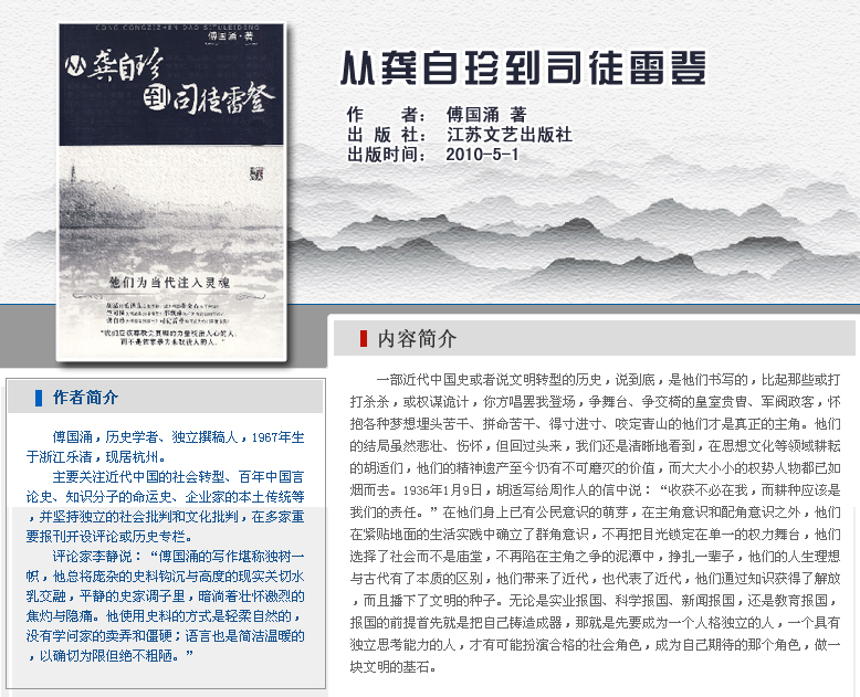 傅國涌在塵封的史料中勤奮爬梳,揭示了近代中國不少歷史真相,以新的視角給讀者新的啟發(fā),實(shí)現(xiàn)了學(xué)術(shù)性和思想性的統(tǒng)一。