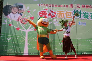 隨后,活動主辦方中國扶貧基金會、百勝餐飲集團(tuán)邀請呼家樓小學(xué)的師生一起種下了“愛心面包樹”,標(biāo)志著童話《面包旅行記》正式啟動,孩子們將利用暑期寫一篇童話,集結(jié)成冊送到貧困山區(qū)孩子手中。同時,活動主辦方也向大家發(fā)出倡議,積攢手中的零花錢,為山區(qū)孩子補充營養(yǎng)、奉獻(xiàn)一份愛心。