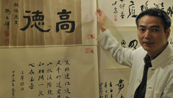 2010年4月,香港普藝拍賣公司拍賣劉墉、馮玉祥、梁?jiǎn)⒊葰v史名人的書法作品。新華社發(fā) |