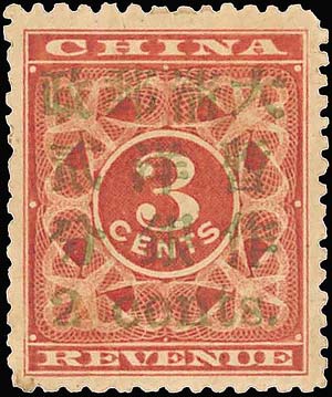 圖為“民國五珍”五枚珍郵之中最為珍罕的1925年北京二版帆船郵票4分暫作3分(紅字)倒蓋新票。據(jù)悉,這枚郵票存世可考者僅有10枚,此次拍賣的是當(dāng)中約5枚存世新票之一,成交價(jià)為刷新紀(jì)錄的207萬港元。 |