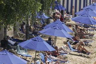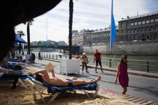 在夏日來到巴黎的塞納河畔,眼前是白色的細沙、一排排蔚藍的遮陽篷和躺椅、郁郁蔥蔥的棕櫚樹,這里儼然已經(jīng)成為一片真正的陽光沙灘。 這是巴黎市政府為供市民休閑娛樂特別推出的“巴黎沙灘”活動。從2002年開始,巴黎市每年都會在盛夏來臨時在市區(qū)設置沙灘休閑娛樂設施,供大眾免費享用。在今年度假潮到來之際,第九屆“巴黎沙灘”也如期而至,為巴黎市民和各國游客提供了一個休閑度假、享受陽光的好去處。 據(jù)介紹,“巴黎沙灘”活動現(xiàn)場主要位于巴黎市政廳附近的塞納河畔以及巴黎19區(qū)一處水道旁,分別綿延2.8公里和1.5公里。主辦方在短短四天五夜間將運來的1350噸細沙、250處日光浴、數(shù)百張折疊躺椅、聚餐桌椅、熱帶樹木等安置在河畔。不僅餐飲、娛樂、淋浴等項目一應俱全,甚至還安裝了220平方米大的游泳池供游客消暑嬉戲。 在這里,人們可以遠離喧囂、靜聽塞納的江聲,躺在細沙上度過休閑的時光,可以在沙灘上買到冰激凌、品到香濃的咖啡。主辦方還開設了圖書館為沙灘上的人提供書籍和雜志,人們可以邊“美黑”邊閱讀。另外還有水上健身課程、兒童科學小實驗等項目供人們休閑娛樂。 一對在巴黎生活的德國老夫婦告訴記者,他們很喜歡“巴黎沙灘”!叭ツ晡覀兙蛥⒓舆^,今年我們從開幕第一天就來了,還帶上野餐的食物在陽傘下品嘗。這非常有趣,太舒服了!” 一個可愛的法國小女孩很開心地對記者講述了她和爸爸、弟弟從早上來到“巴黎沙灘”的游玩經(jīng)歷:“雖然玩滾球游戲總是爸爸贏,弟弟喜歡潑沙子,但是我還是很喜歡到這里嬉戲、曬太陽! 活動負責人DamienMasset接受記者采訪時表示,他的工作團隊負責整個活動的每一個細節(jié),包括沙子、日光浴、樹木、餐飲以及音樂、舞蹈等文化活動都完美地運行;顒幼畛跏菫橄娜者沒到南部海灘度假的巴黎人而設的,在這里他們也能愜意享受到陽光和沙灘。而漸漸該活動成了巴黎夏日一道獨特的風景線,加入了許多外國游客夏天巴黎游的必經(jīng)線路。 今年的“巴黎沙灘”耗資220萬歐元,除了大量物資投入外,主辦方派出了650名救生員,自開幕之日起至8月20日結束全程保護游客的安全。 |