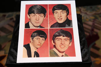 日前在澳門舉辦的好萊塢“傳奇”巨星珍品展暨拍賣會(huì)展示的披頭士簽名宣傳像!⌒氯A社發(fā)(張金加/攝) |
