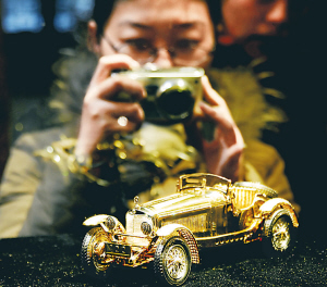 1月28日,在杭州舉行的中國金屬藝術(shù)精品展上,一輛由黃金、珠寶、鉆石打造、身價百萬的“老爺車”讓前來觀看的市民耳目一新。
