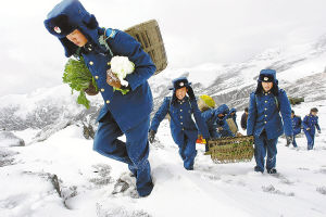 2月11日,戰(zhàn)士們走在為藏東南空軍某雷達站送年貨的路上。連日來,駐藏空軍部隊組織專門力量為所屬雷達陣地送年貨。
