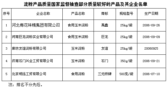 為了保護(hù)消費(fèi)者的合法權(quán)益,促進(jìn)淀粉行業(yè)的健康發(fā)展,國家質(zhì)檢總局組織對淀粉產(chǎn)品質(zhì)量進(jìn)行了國家監(jiān)督抽查。共抽查了北京、天津、河北、山東、遼寧、河南等6個(gè)省、直轄市29家企業(yè)生產(chǎn)的34種產(chǎn)品,產(chǎn)品抽樣合格率為88.2%。