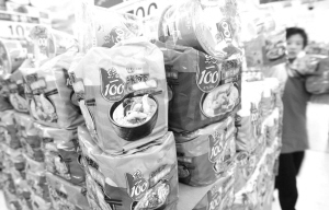 昨天,記者在新街口沃爾瑪超市看到,琳瑯滿目的方便面幾乎占滿超市整整兩大排貨架,有“康師傅”、“統(tǒng)一”、“五谷道場(chǎng)”等10多個(gè)品牌,同一品牌還包括不同品種、口味的產(chǎn)品。細(xì)數(shù)一下,僅“統(tǒng)一”旗下就有“好勁道”、“巧面館”、“統(tǒng)一100”等17種之多。 方便面種類(lèi)繁多,價(jià)格差別也很大,如“統(tǒng)一”的“好勁道”系列,5袋一共4.6元,而“日清”的“出前一丁”系列,同樣是5袋連裝,卻是19元。一般來(lái)說(shuō),袋裝面0.8元到2元之間,桶裝面則是2.5元到4.5元不等。 方便面也十分好賣(mài)。短短1個(gè)小時(shí),就有10多位市民在貨架前選購(gòu),很多市民一買(mǎi)就是好幾大包。 從在超市貨架所占的位置來(lái)看,小小方便面的“地位”卻不容小覷。記者走訪了幾家大型超市看到,沃爾瑪超市,方便面占滿兩排長(zhǎng)約14米的6層貨架;金潤(rùn)發(fā)鼓樓店,3排長(zhǎng)約8米的8層貨架上全部擺放了方便面,其中桶裝面占據(jù)了1排貨架。同樣的情況也出現(xiàn)在蘇果、家樂(lè)福等其他超市。 據(jù)蘇果超市公司內(nèi)部人士透露,方便面之所以受到超市的歡迎,是因?yàn)槠滗N(xiāo)售量十分驚人!疤K果一年的方便面銷(xiāo)售額接近2億元,占到蘇果全年銷(xiāo)售額的3%,食品類(lèi)銷(xiāo)售額的7%!痹撊耸窟說(shuō),其中桶裝面和袋裝面的銷(xiāo)售額比例在2:3左右。 如按袋裝面均價(jià)1元、桶裝面均價(jià)2.5元、銷(xiāo)售額比例2:3計(jì)算,一年僅南京市場(chǎng)上的方便面銷(xiāo)量就為1.67億袋(桶)。南京市人口約640萬(wàn),這樣算來(lái),每位南京人一年的方便面消耗量約為26袋(桶)。
