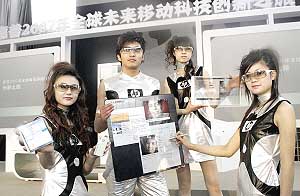 昨天(20日)下午,惠普在北京展示了9款未來移動通信設(shè)備。據(jù)了解,北京是此次惠普“2007年全球未來移動科技創(chuàng)新之旅”的第一站,今后該活動還將在12個國家或地區(qū)的12個城市陸續(xù)舉行。圖為模特展示高科技未來移動概念產(chǎn)品。