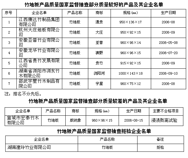 另外,湖南建玲竹業(yè)有限公司在國(guó)家監(jiān)督抽查中拒檢,其產(chǎn)品質(zhì)量按不合格論處。