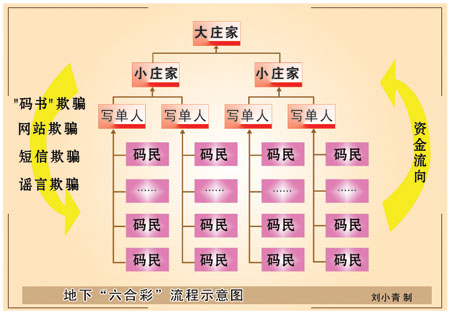 張曉明是修水縣一家國有企業(yè)的下崗工人,為了實現(xiàn)“發(fā)財夢”,2004年在朋友的慫恿下,花了20元錢“買碼”,沒想到轉(zhuǎn)眼竟翻了40倍。第一次的“成功”讓張曉明欣喜若狂。 “從這以后,我就像中了邪一樣,直到把家里僅有的1萬多元錢都賠進去為止!保玻埃埃的辏焉頍o分文的張曉明通過朋友介紹,開始為莊家“寫單”,從其他“碼民”身上賺取手續(xù)費。 “‘十賭九歸莊’,地下‘六合彩’實質(zhì)上是騙局!敝钡綖椤扒f家”寫單后,張曉明才慢慢明白了其中的“奧秘”。張曉明說,“碼民”買碼分買“單雙”、“生肖”、“大小”等六七種方式,但無論你怎么買,“碼民”的錢最終會進“莊家”腰包。 “一旦有人中獎,莊家就會大肆宣揚,極力鼓動別人‘買碼’,而絕大多數(shù)虧得血本無歸的人,只好打落門牙往肚里咽!睆垥悦髡f,每一期“六合彩”