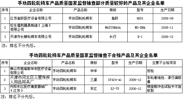 為維護(hù)廣大消費(fèi)者的合法權(quán)益,促進(jìn)行業(yè)健康發(fā)展,國(guó)家質(zhì)檢總局組織對(duì)手動(dòng)四輪輪椅車產(chǎn)品質(zhì)量進(jìn)行了國(guó)家監(jiān)督抽查,共抽查了天津、河北、上海、江蘇、廣東、河南等6個(gè)省、直轄市22家企業(yè)生產(chǎn)的22種產(chǎn)品,產(chǎn)品抽樣合格率為86.4%。