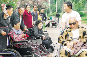 5月8日,湖南籍保姆鐘國(guó)順(右)在浙江溫州松臺(tái)廣場(chǎng)推著輪椅陪雇主散心。在溫州,像鐘國(guó)順一樣的男保姆越來(lái)越多,他們主要承擔(dān)洗衣、燒飯、擦地板、照顧老人和病人等工作。據(jù)家政市場(chǎng)人員介紹,男保姆的月工資在1500元至2000元之間,比女保姆高出許多。據(jù)《浙江日?qǐng)?bào)》