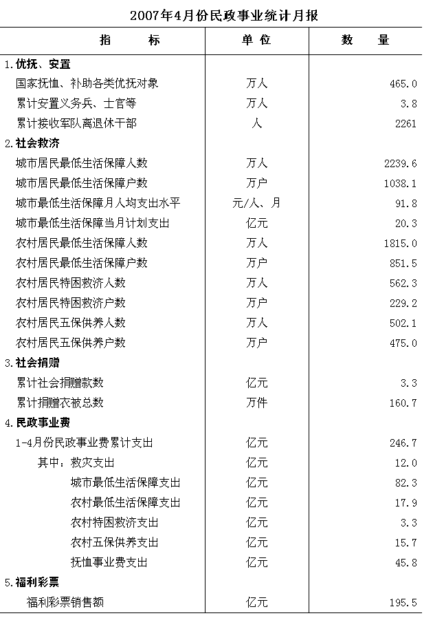 民政部公布4月份民政事業(yè)統(tǒng)計數據