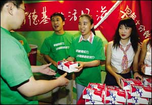 昨天(23日)早晨,天恒大廈里舉行了一場(chǎng)登樓活動(dòng),活動(dòng)后近百名白領(lǐng)享受了一頓美味的肯德基早餐。登樓活動(dòng)還將在全國(guó)十多個(gè)城市展開(kāi)。目前,全國(guó)已有80余座城市的千余家肯德基餐廳提供早餐服務(wù),早餐長(zhǎng)期產(chǎn)品有16種。