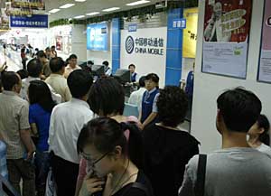 2007年5月23日,北京市民在中國移動業(yè)務大廳排隊辦理“被叫全免計劃”業(yè)務。本報記者 李芳宇 攝