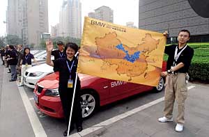 昨天(12日),2007“BMW中國文化之旅”車隊(duì)在京啟動(dòng),由15輛寶馬汽車組成的車隊(duì)從首都博物館出發(fā),將途經(jīng)山西、陜西、甘肅,最后抵達(dá)敦煌。