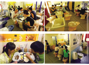 | 深圳食客在廁所餐廳吃得津津有味 | 隨著物質(zhì)生活的條件越來越好,人們對“吃”的要求,已經(jīng)不僅僅停留在食物本身。用餐,已經(jīng)從一種物質(zhì)享受提升到精神享受。南京一些餐館開始從“吃環(huán)境”、“吃個性”、“吃特色”中尋覓商機。這些餐廳還真有點另類的“文化味道”。