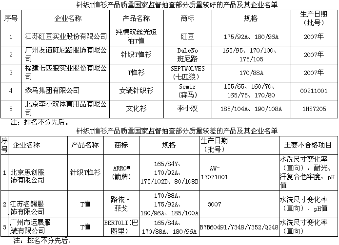 為維護(hù)消費(fèi)者的合法權(quán)益,促進(jìn)針織T恤衫行業(yè)健康發(fā)展,國(guó)家質(zhì)檢總局組織對(duì)針織T恤衫產(chǎn)品質(zhì)量進(jìn)行了國(guó)家監(jiān)督抽查,共抽查了北京、天津、吉林、遼寧、上海、江蘇、浙江、廣東、福建、山東等10個(gè)省、直轄市80家企業(yè)生產(chǎn)的80種產(chǎn)品(不涉及出口),產(chǎn)品抽樣合格率為73.8%。