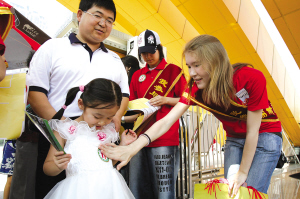 昨天(11日),200名外國志愿者用中英雙語疏導排隊買票的人群。當天是第六個“排隊推動日”,活動的主角是少年兒童,主辦方希望讓孩子們在娛樂中樹立起排隊的意識。