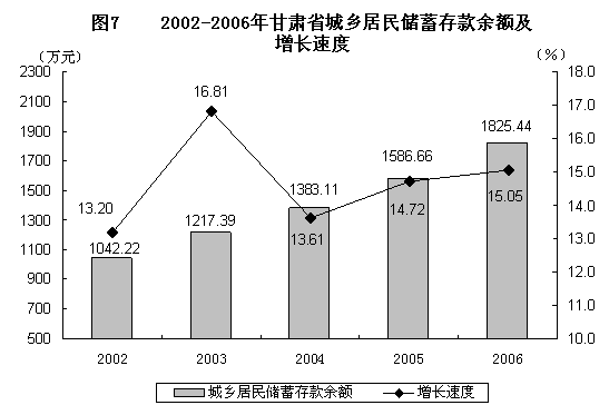 金融機構(gòu)存貸款規(guī)模繼續(xù)擴大。年末,全省金融機構(gòu)本外幣各項存款余額3341.27億元,比上年末增長13.98%。全省金融機構(gòu)人民幣各項存款余額3316.96億元,增長14.54%,其中:企業(yè)存款余額971.99億元,增長11.33%;城鄉(xiāng)居民儲蓄存款余額1825.44億元,增長15.05%。年末全省金融機構(gòu)本外幣各項貸款余額2131.34億元,比上年末增長9.78%。全省金融機構(gòu)人民幣各項貸款余額2112.08億元,增長9.89%。