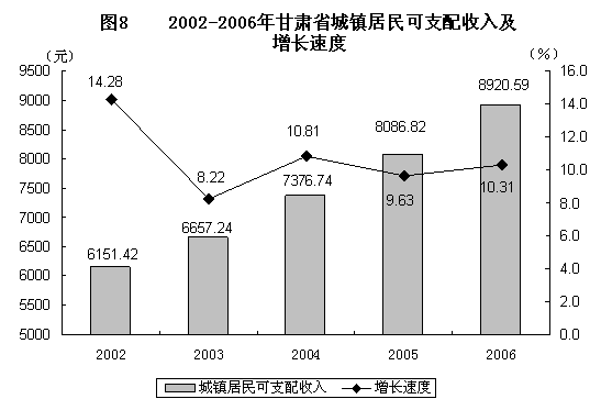 城鄉(xiāng)居民收入增加。全年城鎮(zhèn)居民人均可支配收入8920.59元,比上年增長10.31%,人均工薪收入為7008.40元,增長8.04%,人均轉(zhuǎn)移性收入為2142.35元,增長16.57%;城鎮(zhèn)居民家庭恩格爾系數(shù)為34.53%,比上年下降1.51個百分點。農(nóng)民人均純收入2134元,增長7.8%,人均外出務(wù)工收入為354.7元,增長14.7%,是農(nóng)民增收的主要因素;農(nóng)村居民家庭恩格爾系數(shù)為46.67%,下降0.53個百分點。年末農(nóng)村貧困人口139.41萬人,脫貧人口9.13萬人;年末農(nóng)村低收入人口316.57萬人,解決低收入人口38.75萬人。