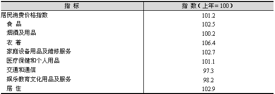 市場價格保持基本穩(wěn)定。全年居民消費價格總水平比上年上漲1.2%(見表1)。