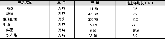 表2 主要農(nóng)副產(chǎn)品產(chǎn)量