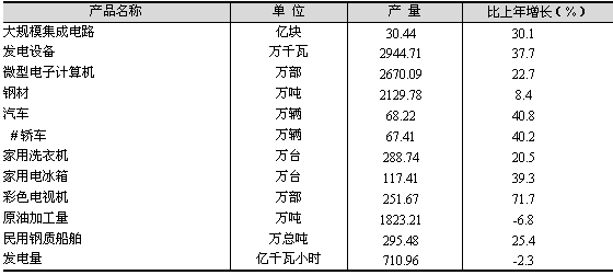 高技術(shù)產(chǎn)業(yè)快速增長。全年高技術(shù)產(chǎn)業(yè)完成工業(yè)總產(chǎn)值4460.97億元,比上年增長16.3%,占全市規(guī)模以上工業(yè)總產(chǎn)值的比重達(dá)到24.4%。 工業(yè)生產(chǎn)產(chǎn)銷銜接良好,全年規(guī)模以上工業(yè)企業(yè)產(chǎn)品銷售率達(dá)到99.1%。適應(yīng)市場需求的工業(yè)產(chǎn)品產(chǎn)量大幅增長(見表3)。