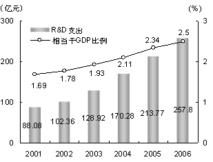 “36條”配套政策及實施細(xì)則。全年用于研究與試驗發(fā)展(R&D)經(jīng)費支出257.8億元,相當(dāng)于全市生產(chǎn)總值的比例為2.5%(見圖10)。