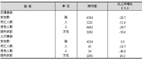 表14 交通事故、火災(zāi)情況
