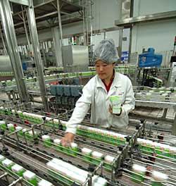 伊利現(xiàn)代化的純牛奶生產(chǎn)線 | 如果把一個(gè)地區(qū)的代表性產(chǎn)品、企業(yè)、行業(yè)看作是它的“名片”,我們?cè)趦?nèi)蒙古自治區(qū)出示的名片上可看到大草原、伊利、羊絨加工等字樣。 近年來,內(nèi)蒙古乳業(yè)在全國(guó)刮起了一陣強(qiáng)勁風(fēng)暴:一個(gè)經(jīng)濟(jì)社會(huì)發(fā)展還都相對(duì)落后的邊疆民族地區(qū),在同一行業(yè)接連出現(xiàn)了兩個(gè)全國(guó)知名品牌、知名企業(yè),其產(chǎn)品銷售覆蓋全國(guó)市場(chǎng),被國(guó)人譽(yù)為內(nèi)蒙古的“兩頭!苯(jīng)濟(jì)現(xiàn)象。