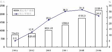 2001-2006年全社會固定資產(chǎn)投資及其增長速度