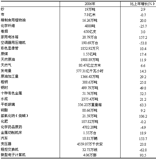 工業(yè)生產(chǎn)快速增長。規(guī)模以上工業(yè)企業(yè)完成工業(yè)增加值1571.8億元,比上年增長18.4%。分輕重工業(yè)看,重工業(yè)增加值1305.85億元,增長20.4%;輕工業(yè)265.95億元,增長13%。全年工業(yè)產(chǎn)品銷售率為98.12%,比上年下降0.3個(gè)百分點(diǎn)。 支柱產(chǎn)業(yè)發(fā)展迅速,對工業(yè)拉動作用明顯。八大工業(yè)支柱產(chǎn)業(yè)完成工業(yè)總產(chǎn)值4258.03億元,比上年增長29.6%,拉動規(guī)模以上工業(yè)增長28.9個(gè)百分點(diǎn)。其中能源化工工業(yè)完成工業(yè)總產(chǎn)值2098.53億元,比上年增長34.4%,拉動規(guī)模以上工業(yè)增長16個(gè)百分點(diǎn);裝備制造業(yè)904.33億元,增長29.6%,拉動規(guī)模以上工業(yè)增長6.1個(gè)百分點(diǎn);有色冶金工業(yè)470.19億元,增長30.1%,拉動規(guī)模以上工業(yè)增長3.2個(gè)百分點(diǎn);其他支柱產(chǎn)業(yè)中食品工業(yè)增長23%,通信設(shè)備計(jì)算機(jī)及其他電子設(shè)備制造業(yè)增長10.7%,醫(yī)藥制造業(yè)增長7.2%,非金屬礦物制品業(yè)增長34.4%,紡織服裝工業(yè)增長14.7%。 規(guī)模以上工業(yè)企業(yè)綜合經(jīng)濟(jì)效益水平大幅度提高。全年實(shí)現(xiàn)銷售收入4259.78億元,比上年增長32.5%;實(shí)現(xiàn)利潤513.64億元,增長31.6%;稅金總額317.14億元,增長31.2%;工業(yè)企業(yè)經(jīng)濟(jì)效益綜合指數(shù)229.29,比上年提高24.6個(gè)百分點(diǎn)。 在統(tǒng)計(jì)的39個(gè)工業(yè)行業(yè)大類中,36個(gè)行業(yè)總產(chǎn)值比上年增長。其中石油和天然氣開采業(yè)總產(chǎn)值756.73億元,比上年增長47.6%;石油加工、煉焦及核燃料加工業(yè)605.07億元,增長38.1%;交通運(yùn)輸設(shè)備制造業(yè)405.55億元,增長40.2%;電力、熱力的生產(chǎn)和供應(yīng)業(yè)316.45億元,增長13.4%;煤炭開采和采選業(yè)228.48億元,增長26.2%;黑色金屬冶煉及壓延加工業(yè)191.43億元,增長27.8%。主要工業(yè)產(chǎn)品多數(shù)保持較快增長,規(guī)模以上工業(yè)主要產(chǎn)品產(chǎn)量如下: