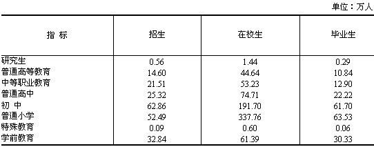 年末全省高等院校達到72所,山西大同大學經(jīng)教育部批準于2006年正式成立。全省高等教育毛入學率達到23.0%,高中階段毛入學率達到69.0%。全省獨立設置的成人高等學校在校學生2.0萬人,學歷教育招生0.6萬人,成人中等專業(yè)學校在校學生1.7萬人,成人技術培訓學校共培訓結業(yè)的職工、農(nóng)民分別為40.7萬人次、135.9萬人次。全年掃盲班結業(yè)1.0萬人。