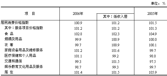 表2:居民消費(fèi)價(jià)格指數(shù)