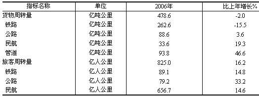 交通:全年貨物周轉(zhuǎn)量478.6億噸公里,比上年下降2%。其中,鐵路262.6億噸公里,下降15.5%;公路88.6億噸公里,增長(zhǎng)3.6%;民航33.6億噸公里,增長(zhǎng)19.3%;管道93.8億噸公里,增長(zhǎng)46.6%。鐵路、公路、民航、管道各種運(yùn)輸方式貨物周轉(zhuǎn)量比重分別為54.9%、18.5%、7%和19.7%。與上年相比,公路、民航、管道比重分別上升1個(gè)、1.3個(gè)和6.5個(gè)百分點(diǎn),鐵路比重下降8.8個(gè)百分點(diǎn)。 全年旅客周轉(zhuǎn)量825億人公里,比上年增長(zhǎng)16.2%。其中,鐵路89.1億人公里,增長(zhǎng)14.8%;公路79.2億人公里,增長(zhǎng)33.2%;民航656.7億人公里,增長(zhǎng)14.6%。鐵路、公路、民航三種運(yùn)輸方式旅客周轉(zhuǎn)量比重分別為10.8%、9.6%和79.6%。與上年相比,公路比重上升1.2個(gè)百分點(diǎn),鐵路、民航比重分別下降0.1個(gè)和1.1個(gè)百分點(diǎn)。