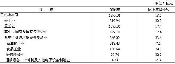 大力開展工業(yè)“提速增效年”活動,全省工業(yè)經(jīng)濟繼續(xù)保持較好發(fā)展水平。工業(yè)生產(chǎn)快速增長。全年規(guī)模以上工業(yè)企業(yè)完成增加值1395.01億元,按可比價格計算,比上年增長18.5