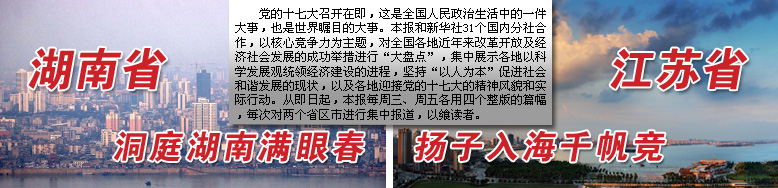 黨的十六大以來,湖南省經(jīng)濟(jì)社會呈現(xiàn)出"又好又快"的蓬勃發(fā)展態(tài)勢。湖南省統(tǒng)計(jì)局局長劉國湘在接受本報(bào)記者專訪時認(rèn)為,巨變來自于十六大以后湖南兩次發(fā)展思路轉(zhuǎn)變。 第一次轉(zhuǎn)變是湖南省第八次黨代會上提出的,是湖南第一次思路轉(zhuǎn)型。變化的核心是由習(xí)慣于抓農(nóng)業(yè)向加快推進(jìn)工業(yè)化、農(nóng)業(yè)產(chǎn)業(yè)化和城鎮(zhèn)化的"三化"進(jìn)程轉(zhuǎn)變。[詳情] | |