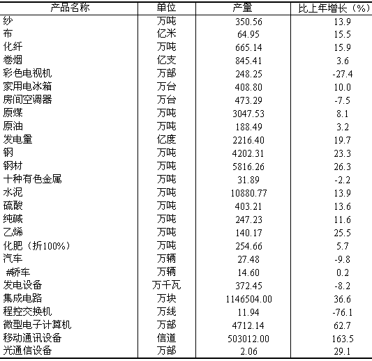 表3 主要工業(yè)產(chǎn)品產(chǎn)量情況