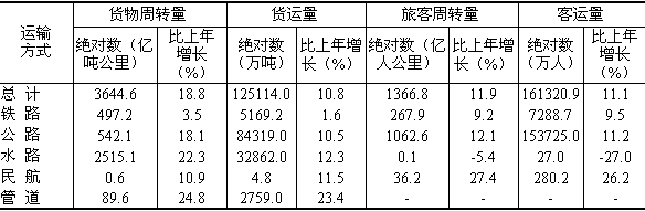 384.15億元,分別比上年增長10.7%和31.1%。 交通運輸業(yè)發(fā)展較快。全年完成旅客運輸量、貨物運輸量分別比上年增長11.1%和10.8%,旅客周轉(zhuǎn)量、貨物周轉(zhuǎn)量增長11.9%和18.8%。完成港口貨物吞吐量8.5億噸,增長16.4%,其中外貿(mào)貨物吞吐量1.35億噸,增長18.2%。年末全省公路里程12.69萬公里,新增3200公里;鐵路營業(yè)里程1602.7公里,鐵路正線延展長度2301.1公里。年末民用汽車保有量240.8萬輛,增長25.3%;其中本年凈增汽車48.55萬輛,增長56.3%。年末私人汽車保有量148.37萬輛,其中本年凈增汽車38.94萬輛,分別增長35.6%和24.7%。年末私人轎車保有量90.11萬輛,其中本年凈增轎車29.36萬輛,分別增長48.3%和45.9%。