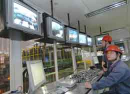 天津鋼管集團(tuán)公司的工人對自動化生產(chǎn)線進(jìn)行監(jiān)控。本報記者:劉海峰 攝