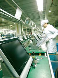 圖為員工在青島開(kāi)發(fā)區(qū)海信工業(yè)園內(nèi)的液晶電視生產(chǎn)線上工作。新華社記者:馮杰 攝 |