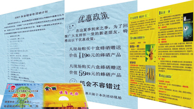 眼下,落戶城市從事現(xiàn)場賣藥的各類公司大有蔓延之勢。在大連一地,僅哈醫(yī)藥金麗公司就自稱設(shè)立了12家分公司,專門從事“面向中老年人群的醫(yī)藥保健品銷售服務(wù)”!妒袌鰣(bào)》記者在一份署名“哈醫(yī)藥集團(tuán)世一堂華納醫(yī)藥有限責(zé)任公司”的“蜂硒軟膠囊”宣傳單中看到,廠家竟然把這種保健食品內(nèi)含的西洋參的作用宣傳成“適用于心律失常、冠心病、急性心肌梗塞、腦血栓、冠狀動(dòng)脈搭橋手術(shù)等癥,適用于高血脂動(dòng)脈粥樣硬化、老年病、糖尿病等癥,適用于老年病、性機(jī)能低下、貧血和癌癥等……” 一些騙子專門打著“國家著名專家”、“國家著名醫(yī)藥企業(yè)”、“國家著名醫(yī)院”的招牌,宣傳、介紹新療法、新藥品。哈醫(yī)藥集團(tuán)世一堂華納有限公司在其“蜂硒軟膠囊”宣傳單中有這樣一段文字:“2003年,中國疾病預(yù)防控制中心際君石研究員宣布,在各種具有免疫調(diào)節(jié)功能的營養(yǎng)素(包括維生素C、維生素E、維生素A、鋅、鎂等)中,硒是唯一可以直接抗病毒的營養(yǎng)素”。這個(gè)宣傳違反了“藥品及保健品廣告的宣傳內(nèi)容不得利用國家機(jī)關(guān)、醫(yī)藥科研單位、學(xué)術(shù)機(jī)構(gòu)或者專家、學(xué)者、公眾人物、醫(yī)師、患者的名義和形象作證明”的規(guī)定。 所謂“專家宣布”是否真實(shí)有效?《市場報(bào)》記者就此問題專門致電中國疾病預(yù)防控制中心。聽了記者的介紹,這個(gè)中心營養(yǎng)與食品安全部(室)的一位專家感到驚愕,她告訴記者,中國疾病預(yù)防控制中心并沒有姓“際”的研究員,而且,一位叫“陳君石”的研究員已經(jīng)在幾年前就退休了。她出言謹(jǐn)慎,“我沒有聽到這樣的事情。并且,中國疾病預(yù)防控制中心沒有義務(wù)‘宣布’這樣一些與自己的法定職能不相稱的信息!庇浾咴噲D聯(lián)系那位叫“陳君石”的研究員,可是不知何故,他的電話一直沒有人接。一位化學(xué)專家指出,人體內(nèi)有幾十種微量元素,硒作為人體內(nèi)已知的微量元素之一,與其它元素協(xié)同作用,有益于保持人體的健康平衡,恣意夸大某種人體內(nèi)的微量元素的作用,強(qiáng)補(bǔ)某種微量元素,只是商家的炒作,并不利于人體的健康。 有意夸大功效,胡亂捏造概念,唬人的招牌——成為這些藥品直銷活動(dòng)的共性。
