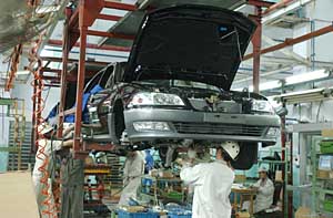 東風(fēng)汽車(chē)公司轎車(chē)生產(chǎn)線。新華社記者 郝同前
