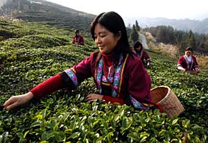 土家姑娘在采茶。文林
