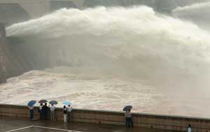 黃河小浪底調(diào)水調(diào)沙的壯觀風(fēng)景。攝影/本報(bào)記者
