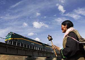 青藏鐵路全線運(yùn)營一年來,西藏運(yùn)用科學(xué)發(fā)展觀,著力管好用好鐵路,培育新的經(jīng)濟(jì)增長點(diǎn)。同時(shí),制定了“一產(chǎn)上水平,二產(chǎn)抓重點(diǎn),三產(chǎn)大發(fā)展”的目標(biāo),經(jīng)濟(jì)格局由供給型向市場型轉(zhuǎn)變,火車成為經(jīng)濟(jì)發(fā)展“助推器”。